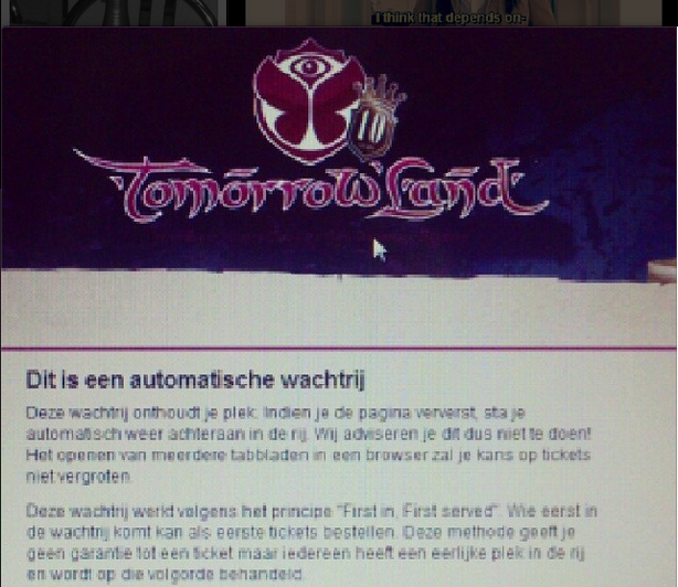 I guess you all know the music festival Tomorrowland. I go each year and ticket sale starts today. Because of the huge interest, ordering tickets can take hours. I'm in the vertual waiting line right now. Thumbs up!